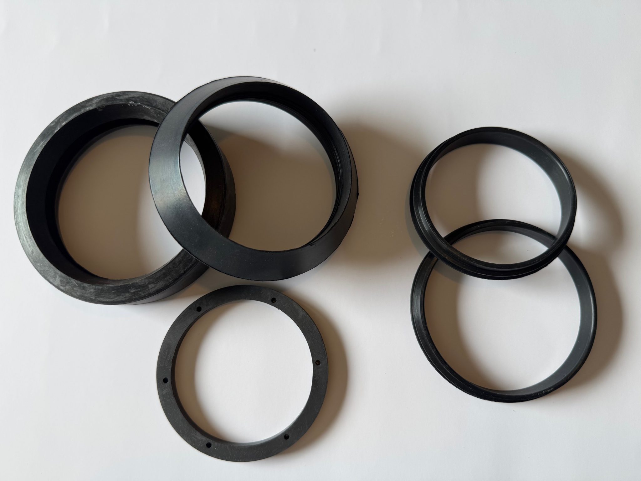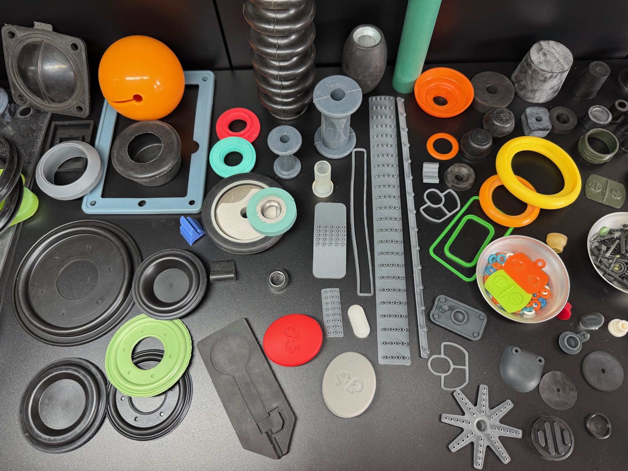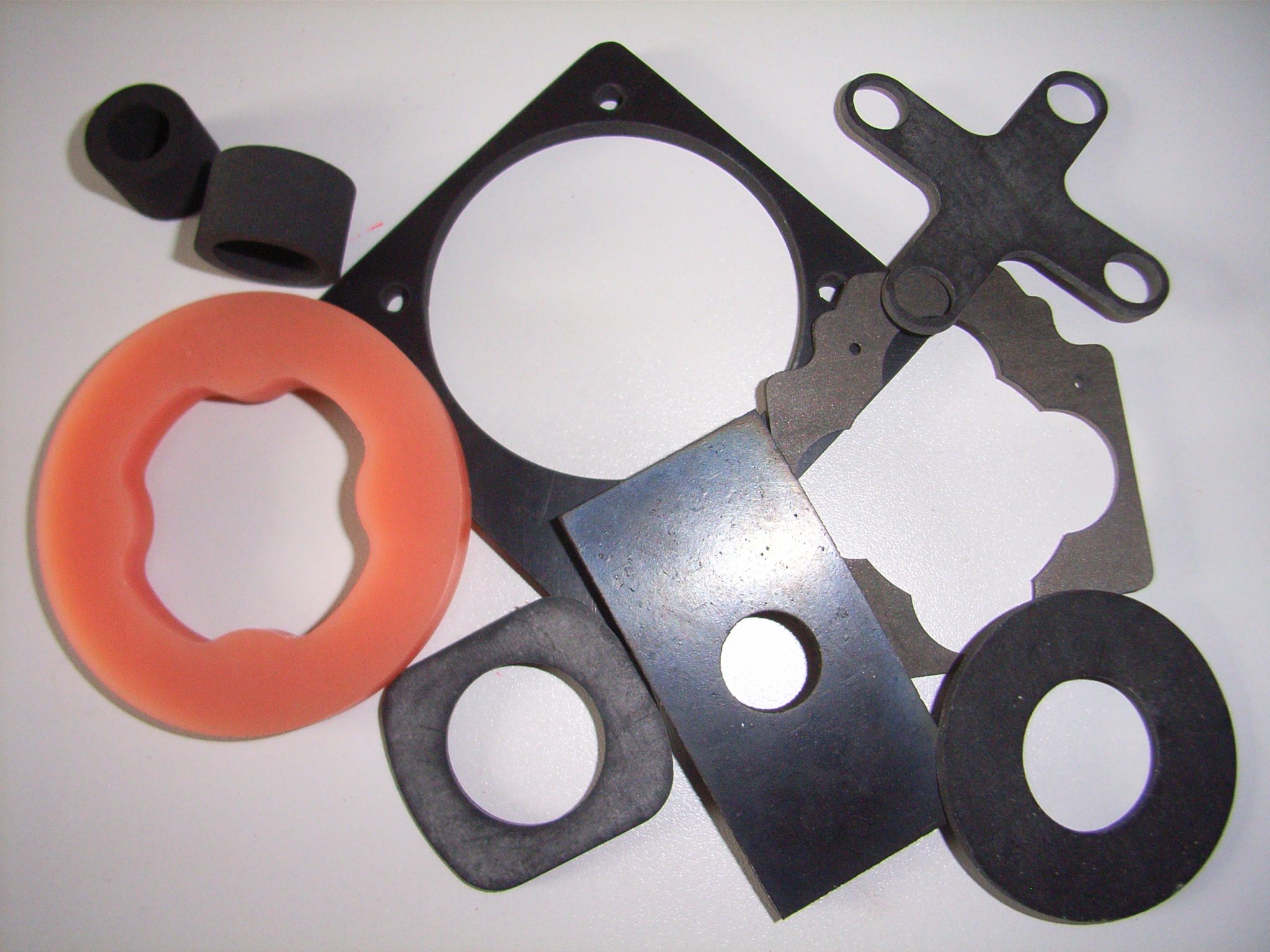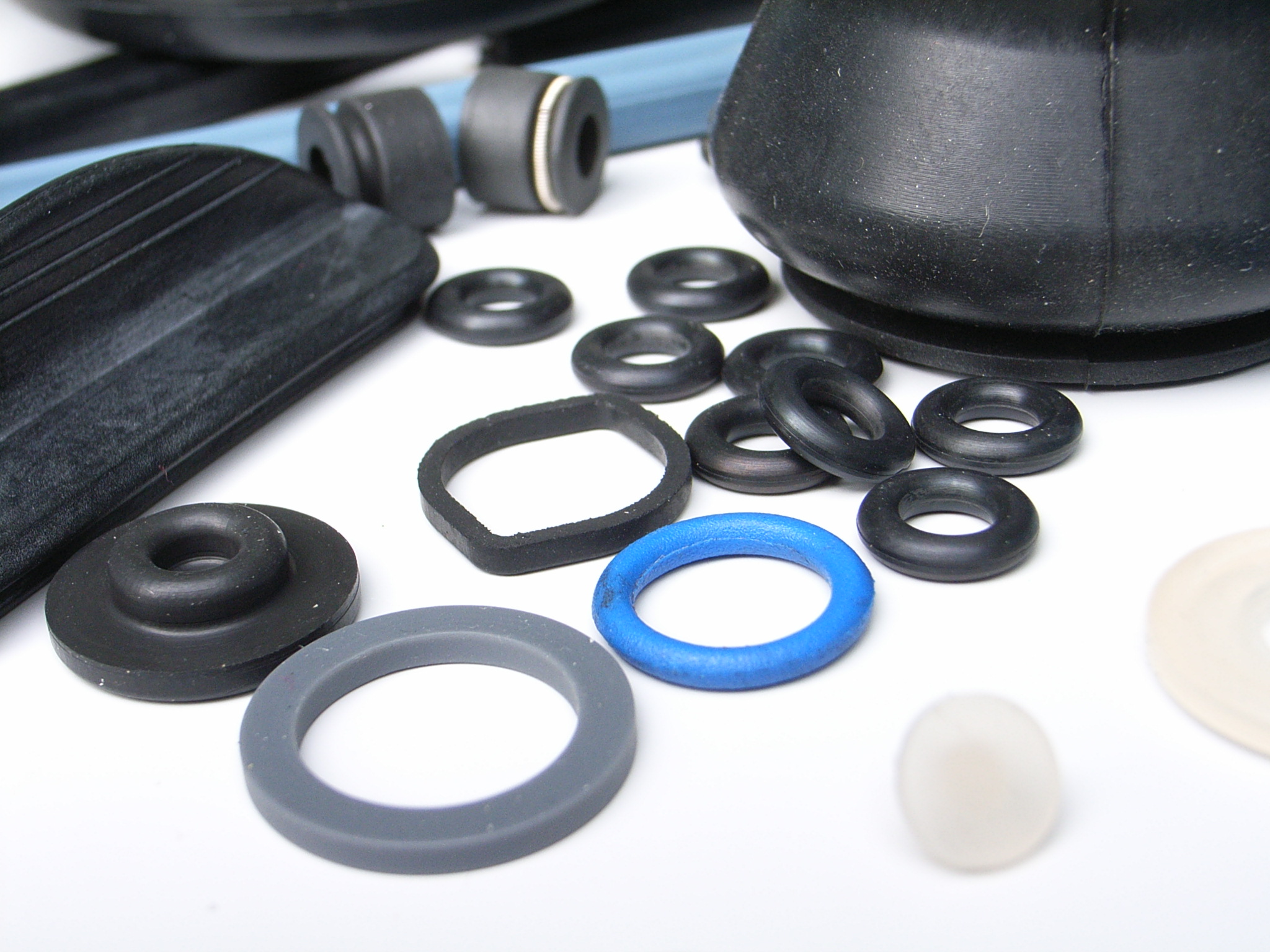 Vi arbejder med mange typer gummi – blandt andet silikone, nitrilgummi og EPDM – som hver især har egenskaber, der egner sig til forskellige miljøer. Nogle tåler høje temperaturer, andre olie eller rengøringsmidler. Vores opgave er at finde det, der fungerer i jeres situation – uanset om det er til en pakning i fødevareproduktion eller en tætning i et sterilt medico-setup.